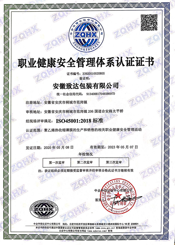 職業(yè)健康安全管理體系認(rèn)證證書(shū)